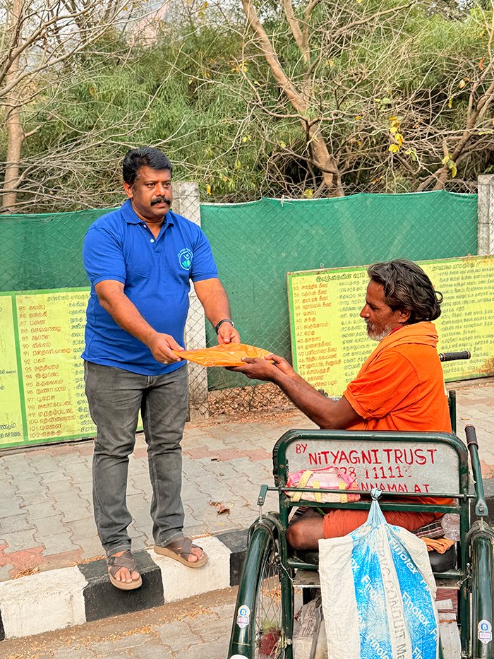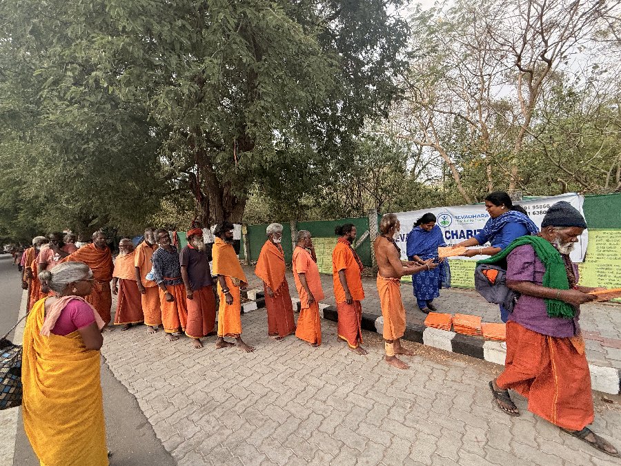 On 25th February 2026, Sevadhara Charitable Trust carried out a cloth (T-shirt) distribution initiative at Thiruvannamalai, Tamil Nadu, a prominent pilgrim center that is home to many sadhus and sanyasins. Thiruvannamalai attracts spiritual seekers from across the country, and many ascetics and devotees choose to live in simple conditions, often without stable shelter, adequate clothing, or access to basic necessities. Recognizing these needs, Sevadhara extended its support by distributing T-shirts to individuals residing on the streets and around temple premises.