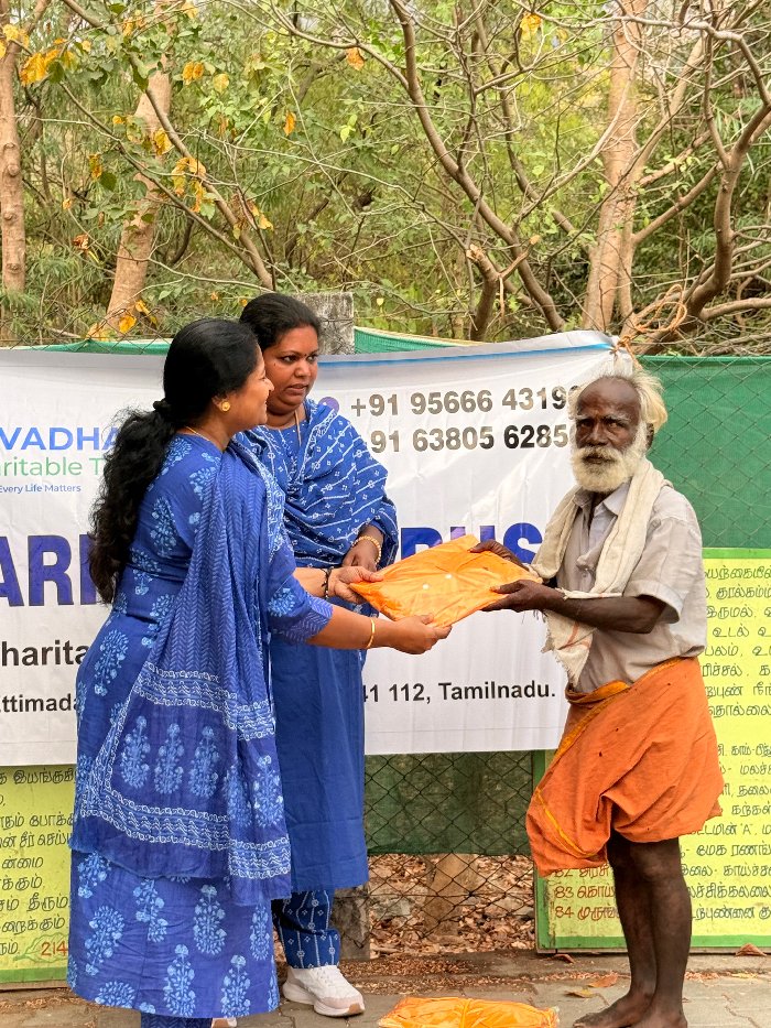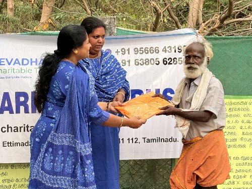 On 25th February 2026, Sevadhara Charitable Trust carried out a cloth (T-shirt) distribution initiative at Thiruvannamalai, Tamil Nadu, a prominent pilgrim center that is home to many sadhus and sanyasins. Thiruvannamalai attracts spiritual seekers from across the country, and many ascetics and devotees choose to live in simple conditions, often without stable shelter, adequate clothing, or access to basic necessities. Recognizing these needs, Sevadhara extended its support by distributing T-shirts to individuals residing on the streets and around temple premises.
